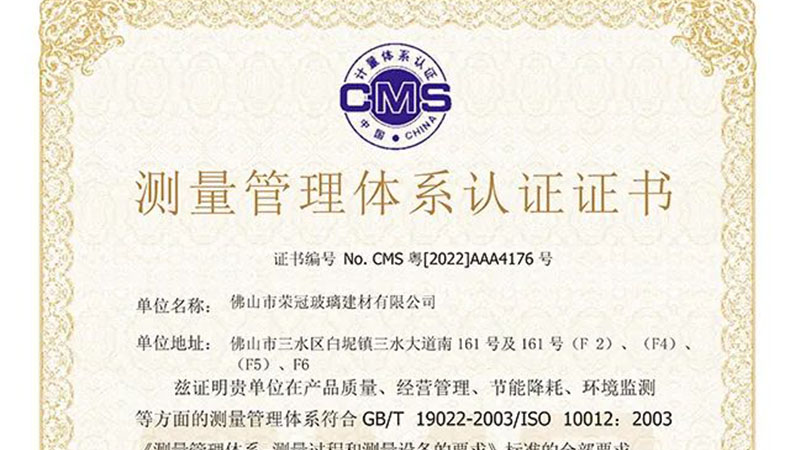 喜報!榮冠公司獲得AAA級“測量管理體系認證”證書...